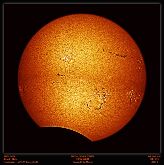 The Nov. 3, 2013 partial solar eclipse observed and captured from Malta. Credit and copyright: Leonard E. Mercer.