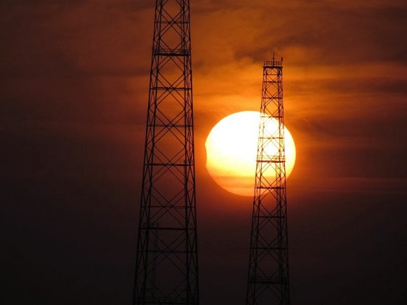 A partially eclipsed Sun rises over the Vehicle Assembly Building at Kennedy Space Center in Florida on November 3, 2013. Credit and copyright: David Dickinson.